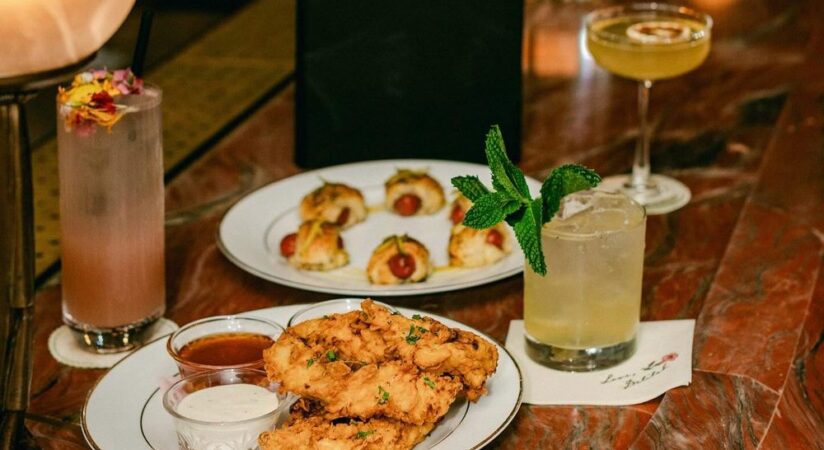 A swanky dinner & drinks spot with a 1920s vibe, classic cocktails & an American menu.