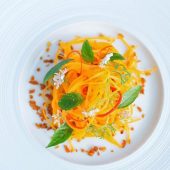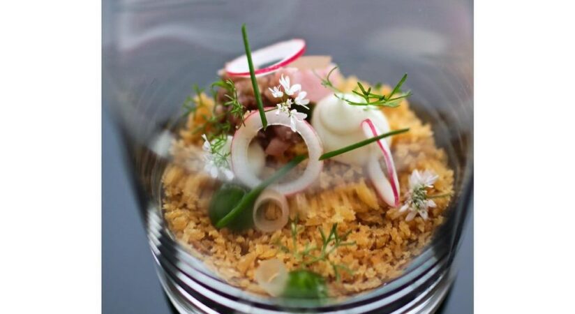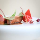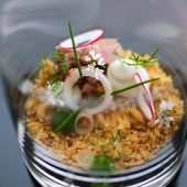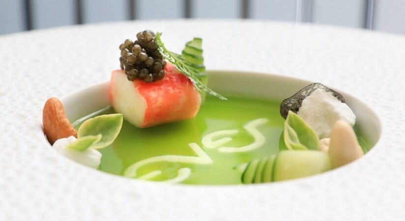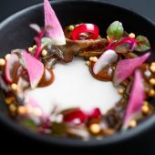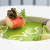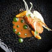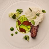 Chef Curtis Duffy’s Ever is a stylish, graciously run destination, set off the beaten path in Fulton Market. The mood is peaceful, and the space is kitted out with spaciously arranged tables, velvet-smooth leather seats, and plush carpeting.  The meal is a visual thrill with inventive presentations that entice at every turn. The cuisine is marked by refinement and may reveal a seasonal highlight of chilled English pea puree poured into a bowl dressed with puffed grains and black garlic; Alaskan halibut arranged with a gently spiced coconut cream and orange squash pavé; or seared Hokkaido scallop sauced with mustard seed vinaigrette and vegetable demi-glace. Bread service is a stunning enhancement to the experience, as is the wine service and optional spirit-free drinks pairing.