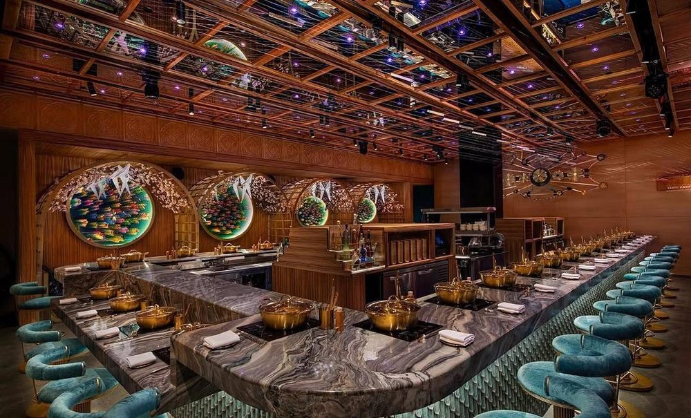 Indulge in a selection of sushi and sashimi while exploring the Japanese art of cooking with water – shabu-shabu (boil) and seiro-mushi (steam) – featuring the world’s finest meats, seafood, and fresh produce, all beautifully presented in a restaurant that feels like dining inside a music box. You will experience Japanese culinary tradition beneath a 40-foot Earth Harp which envelops the space in sound, turning the entire restaurant into an enormous, immersive musical instrument.
