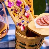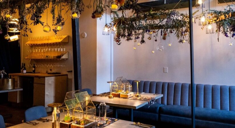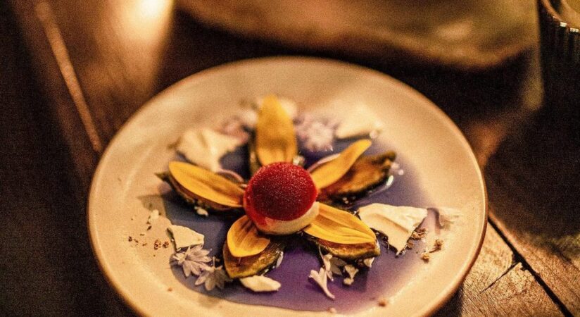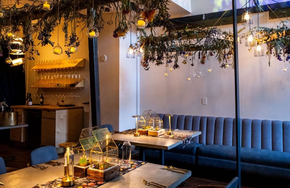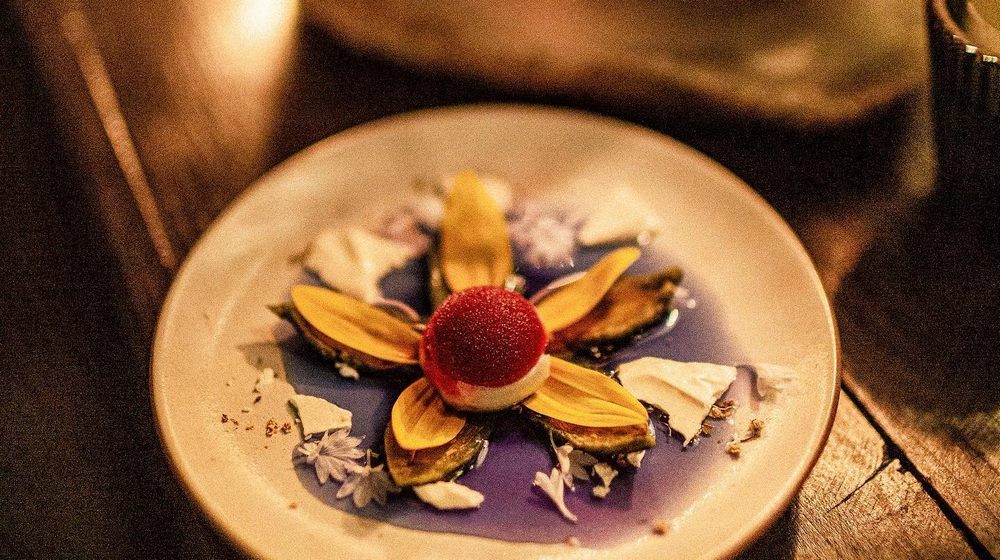 is a boutique fine-dining restaurant. Our menus are heavily theme-driven and immersive. At any given point, our guests could be whisked to the Swiss Alps to scoop up sprinkles of blooms off a green hillside while enjoying a menu of edible flowers, or invited to a Mad Tea Party where they encounter an Apple-of-your-Eye cake featuring a photo of themselves gazing up from the past. Led by Chef Ryan Shelton, we have an intimate team who all work passionately to design recipes, make plates out of various materials, and fastidiously choose wine pairings. Every three months we change our service format, plateware, menus, and decor dramatically to match our theme.