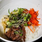 MONOMONO is a beloved East Village destination where it’s signature Asian Fusion meets flower-garnished soju cocktails, various and unique music playing every day. Located at 116 E. Fourth St., the design combines art deco musical antiques, modernist quasi-industrial elements and 15,000 vinyl records encased along its walls. The effect is delectable, elevating musical appetites while providing more conventional nourishment in the form of robustly flavored fare.