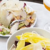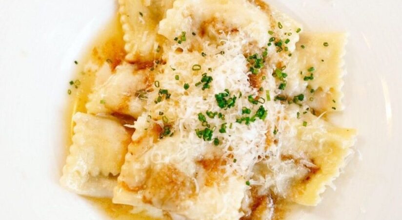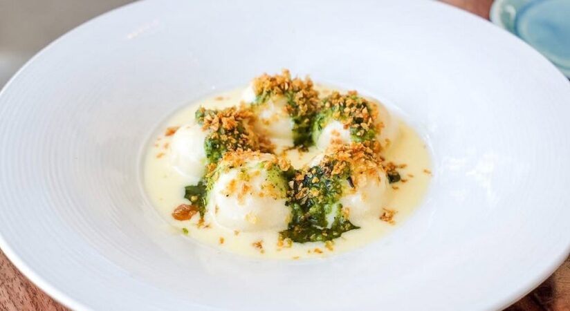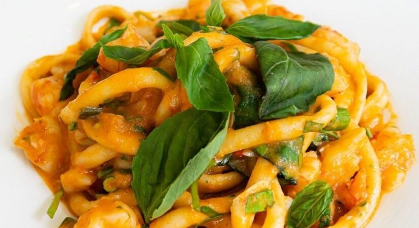 Italian seafood & pasta plus cocktails are presented in a glamorous venue with high ceilings.