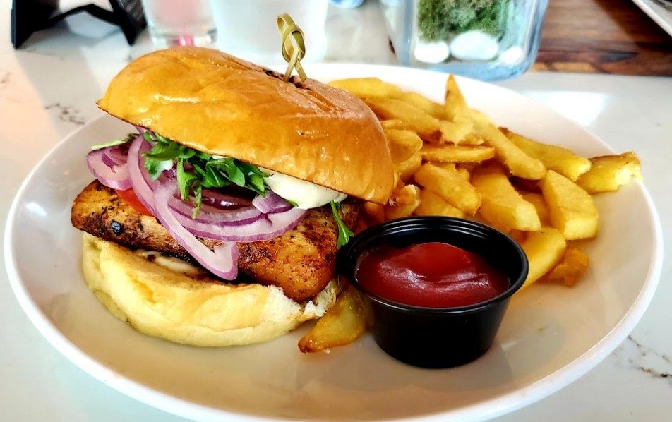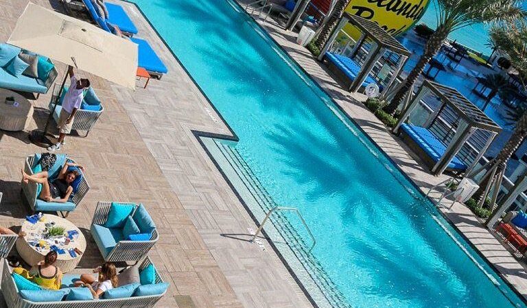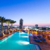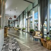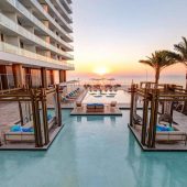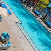 Chic lounge providing Mediterranean small plates & poolside snacks to hotel guests & visitors.